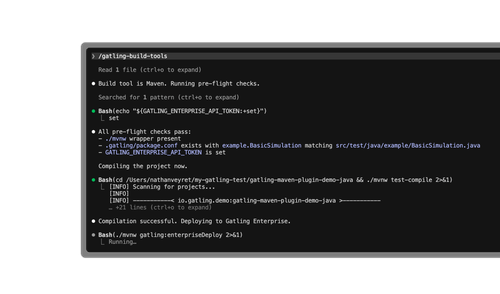 Skills are structured instruction sets for Claude Code, designed to guide your AI agent through specific, multi-step tasks with built-in checks, correct parameters, and real data from Gatling Enterprise Edition.