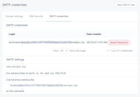 Once your site is fully set up create a Mailgun account. After your account is verified navigate to Domain settings under Sending in the Mailgun admin. There you’ll find your SMTP credentials.