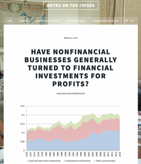 Subscribers seek out analysis publications most often to help them succeed in their professional lives. A well-known model of this type is Nathan Tankus’ Notes on the Crises, which runs on Ghost and “covers the play by play of the current pandemic-induced global depression and how policymakers should respond.”