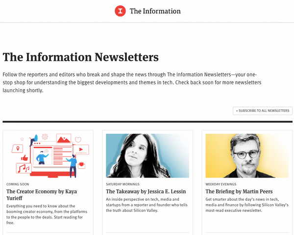 The value proposition for reporting newsletters is often a unique viewpoint or exclusive coverage readers can't find anywhere else. One of the best examples from this space is The Information which positions itself as offering "Tech news you won't read elsewhere."