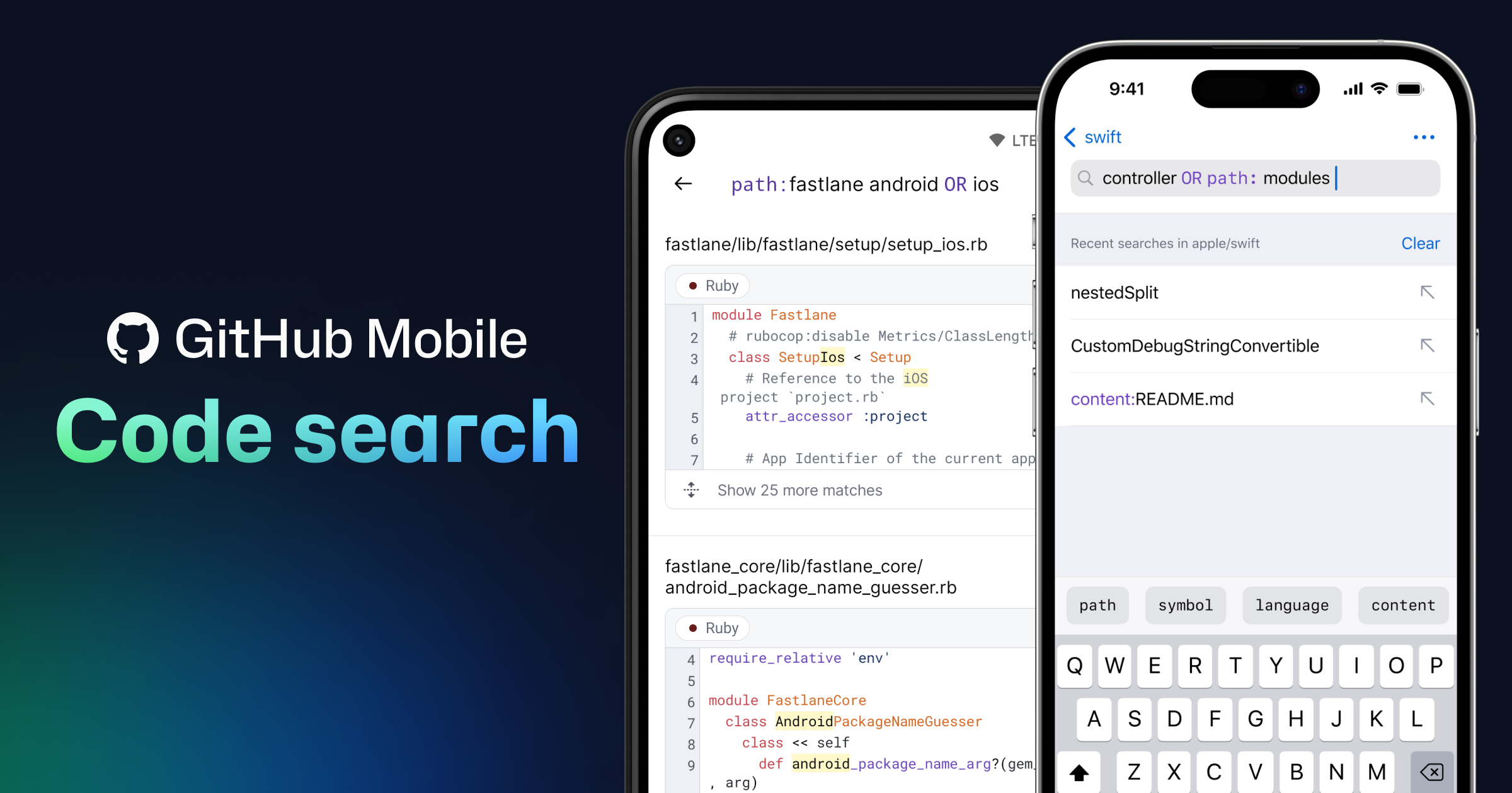 Code Search: Easily search for code within repositories on GitHub Mobile.