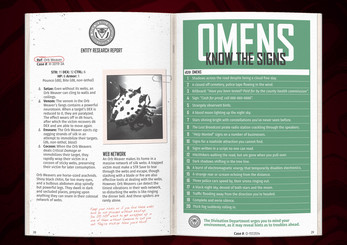 The book was used as a point of reference in a few places (mostly just some of the flare on the cover), but the design was primarily built off of the existing templates from The Bureau and The Bloom, which referenced actual FBI documents and government handbooks.