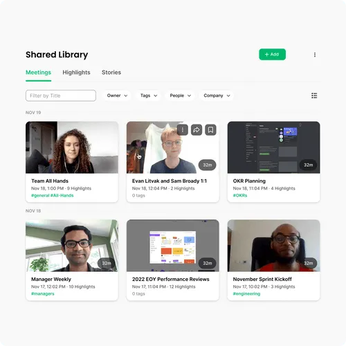Use collections and #tags to organize your meetings and let your team discover and dive deep into any conversation they want.