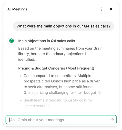 Grain has everything your team needs to get more out of every meeting. It’s free to use, simple to set up, and cost-effective for your entire company.