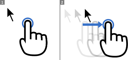 In both absolute and relative modes, you can click-and-drag by tapping the screen and then quickly placing your finger back down. This gesture only causes the mouse button to press down, but does not release it again until you lift your finger back up.