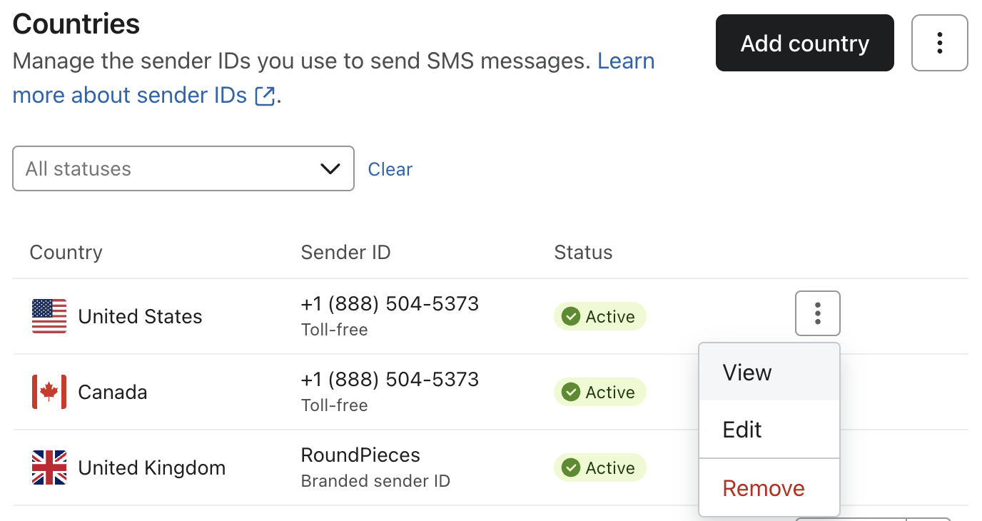 Wenn du deine Absendernummer nicht behalten möchtest, kannst du sie entfernen. Wenn du eine Nummer entfernst, gibst du sie frei, sodass du keine SMS mehr erhalten kannst.
