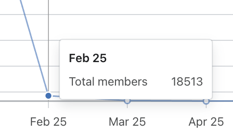 Además, al pasar el ratón por encima de una barra del gráfico aparecerá una ventana emergente que proporciona la cantidad de miembros ganados y perdidos durante ese punto concreto en el tiempo.