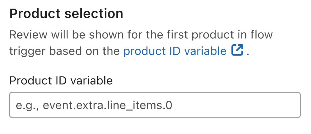 Sin embargo, para algunos flujos personalizados, puede que necesites introducir manualmente una variable de ID de producto. Si ves el campo de variable ID de producto que se muestra en la captura de pantalla siguiente, sigue estos pasos para añadir una variable.