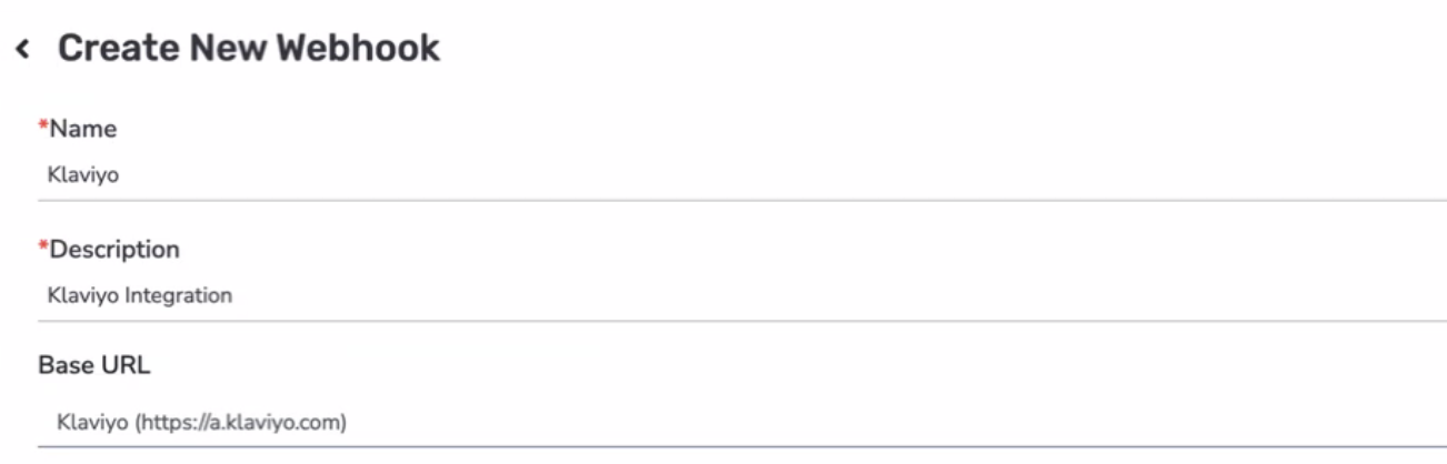 Collez l'URL du webhook que vous avez copié à partir de Klaviyo. Ensuite, supprimez https://klaviyo.com de sorte qu'il vous reste /API/webhook