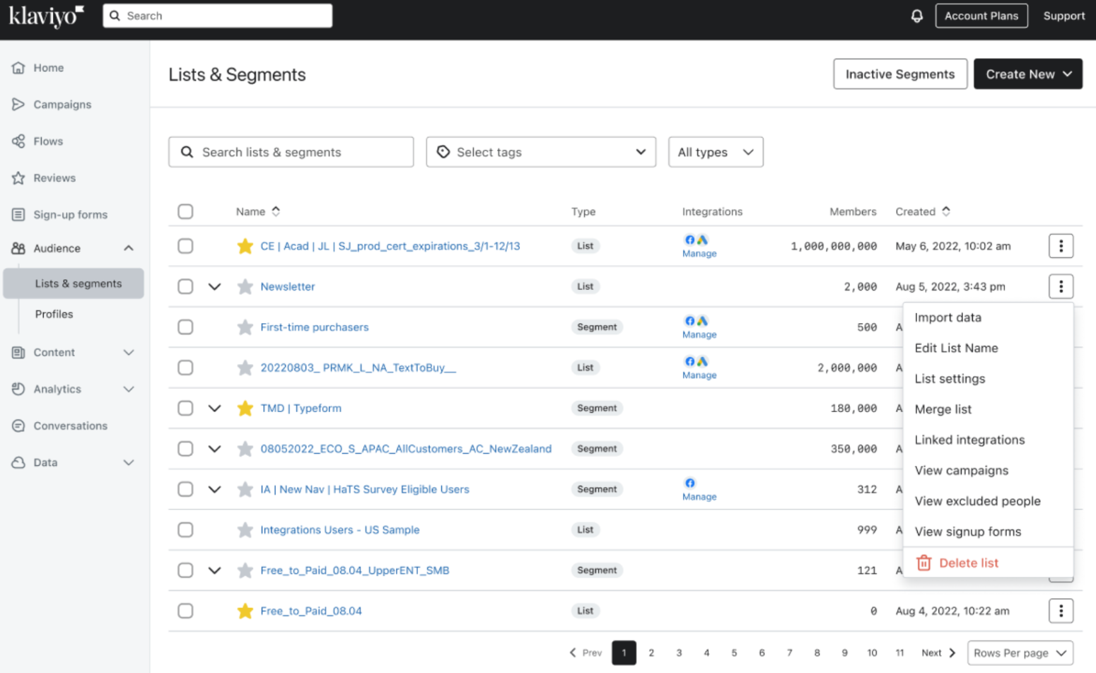 - Accédez à l’onglet Listes et segments sous Audience.