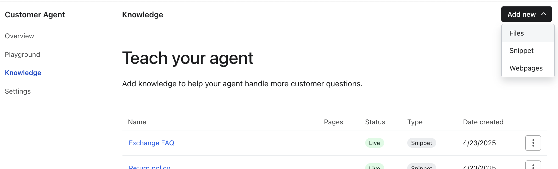 Saiba mais sobre como o Customer Agent aprende.