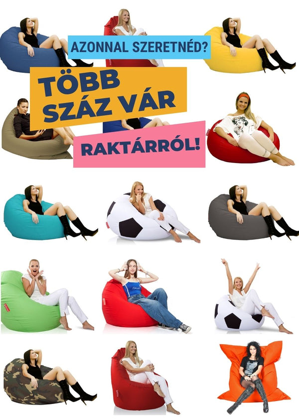 A FOGD ÉS VIDD! Raktárunkban lévő, kész babzsákfoteleket azonnal megvásárolhatod, nem kell várnod az elkészítésükre. Max. 4 munkanapon belül kiszállítjuk Neked, és már huppanhatsz is bele! Egyedülálló, súlykorlát nélküli, 4-szeres Garanciát vállalunk rá! Siess, nehogy más vigye el előled. Íme a kész babzsákok, raktárról: