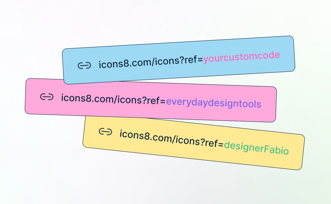 Share Icons8 graphics and tools to your website audience and social media followers using referral links and earn from qualifying purchases. Here are some figures:
