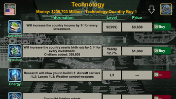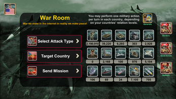 Weapons Suppliers from around the world, a Spy Center, a War Room, Diplomats, United Nations, an Economy system, Technology, World News Distribution (Economy, Relations, Spy and War) and very advanced Artificial Intelligence.