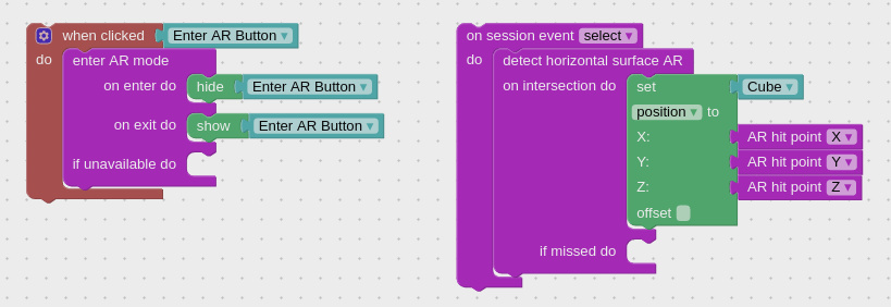 Upon entering AR mode you will be able to position your 3D content in the “real” coordinate system, which is aligned with your mobile device. In addition to that, you can detect horizontal surfaces (tables, shelves, floor etc) by using the detect horizontal surface AR puzzle.