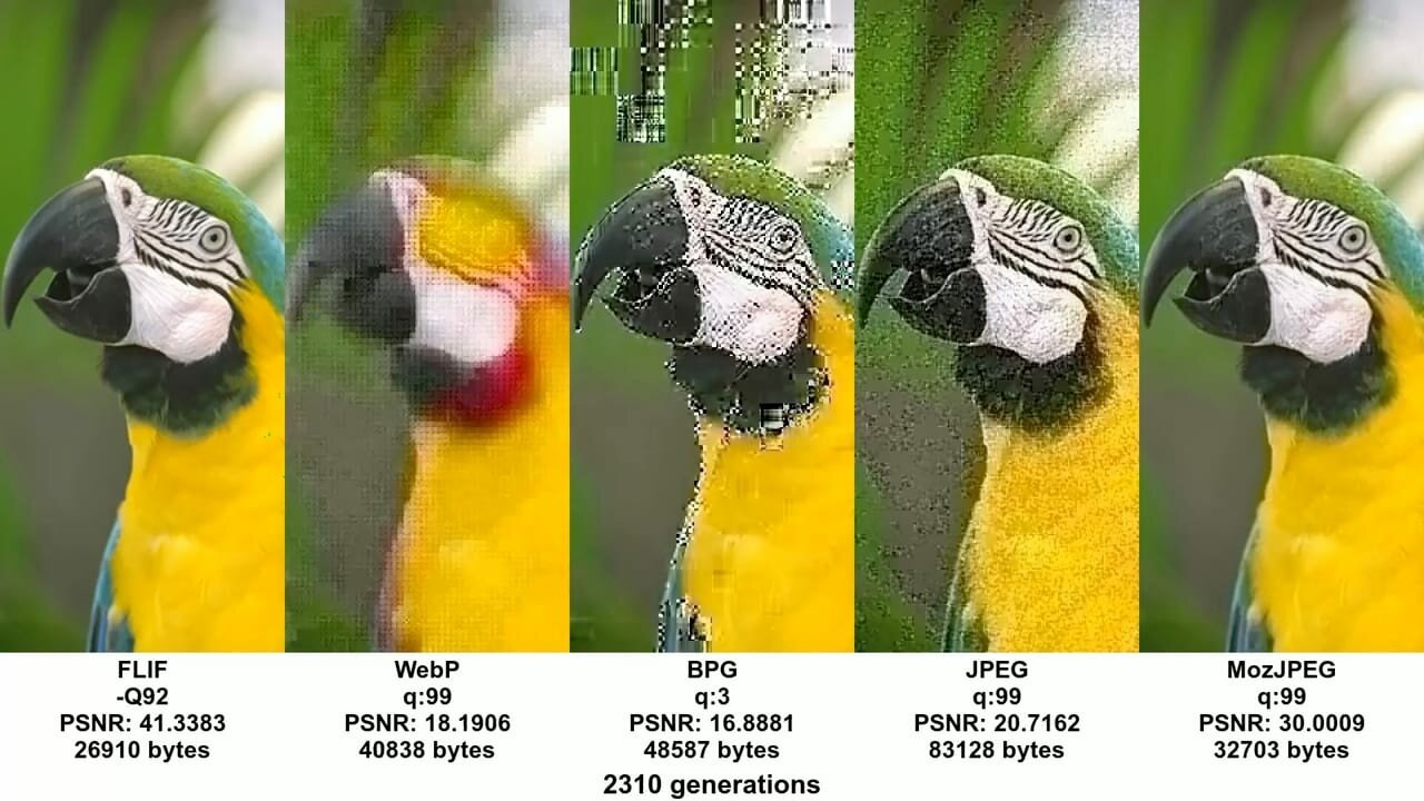 PIK is a new image codec worth keeping an eye on. It’s compatible with JPEG, has a more efficient color-space and utilizes similar benefits found in Guetzli. It decodes at 2/3 the speed of JPEG and offers 54% more file savings than libjpeg does. It is both faster to decode and compress than Guetzli-ified JPEGs. A study on psychovisual similarity of modern image codes showed PIK was less than half the size of alternatives. Unfortunately, it’s still early days for the codec and encoding is unusably slow at this time (August, 2017).