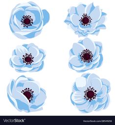 Watercolor Blue Anemone Flowers