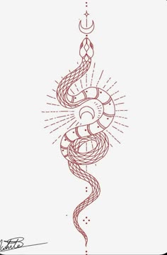a line drawing of a snake with the sun coming out from its mouth and on top of it's head