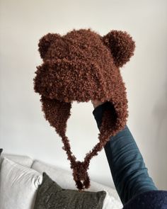 ushanka pattern available on etsy (ears included). lana grossa orsetto yarn, 40ch and sl st ties #crochet #crochetinspo