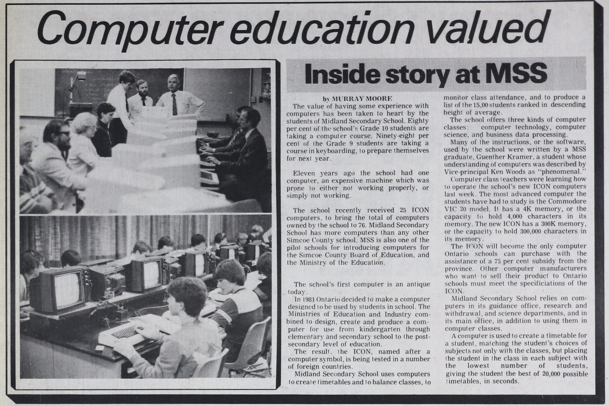 The ICON story started in 1982, when the Ontario Ministry of Education laid out the vision for computer use in the classroom. Computers were to be a tool for students to extend original thought: to write, compose, design and analyze. Not just as a terminal for accessing raw information. This feels like a very intelligent approach to computers.