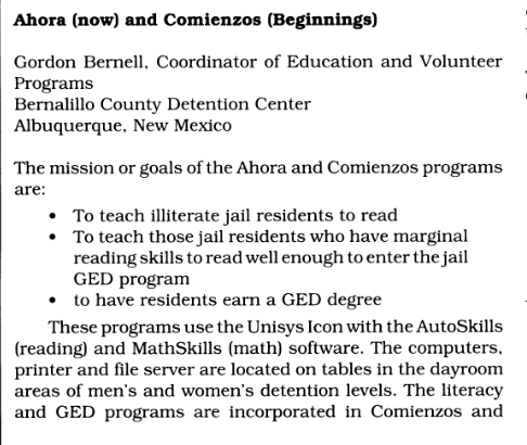 The ICON was used in a prison literacy program in New Mexico (circa 1990):