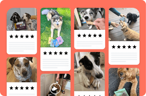 An interactive carousel that turns your best video, image, and text reviews into moving stories shoppers can swipe, click, and play.