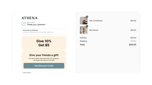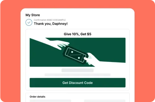 Turn customers into brand advocates by offering them referral links to share right after they make a purchase.