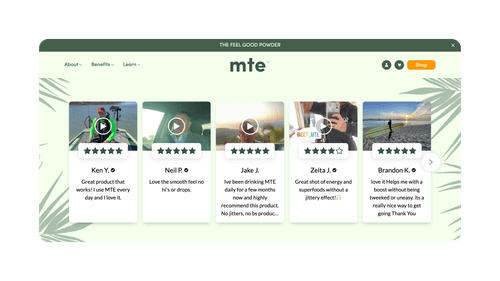 A sleek, rotating slider for your most impactful video reviews so shoppers can see your products in action.