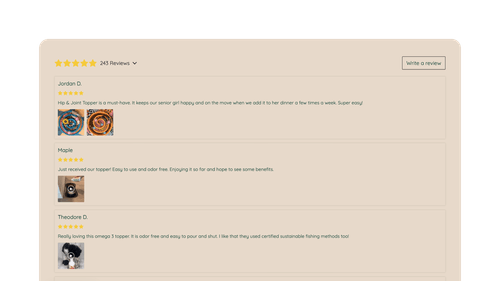 A fully customizable review gallery showcasing product and store reviews. Display them side-by-side or as dedicated widgets to inspire shoppers to buy.