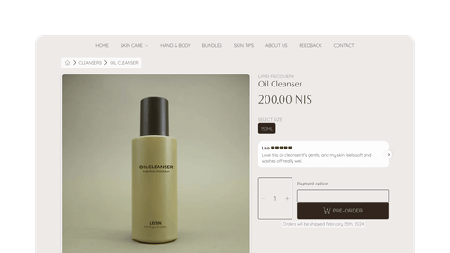 Give customers the confidence to complete their purchase with star ratings and review counts at checkout. Only available for Shopify Plus stores.