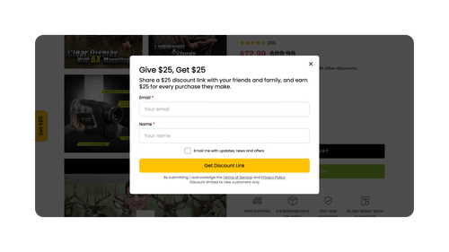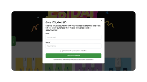 Encourage customers and visitors to become brand advocates by signing up and receiving referral links to share with friends and family.