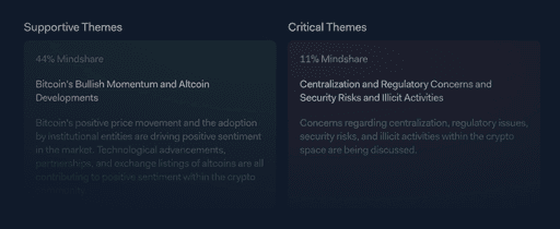 Instead of scrolling endless social feeds, get consolidated metrics alongside AI-driven insights containing market-moving chatter, ranked and contextualized to help you act faster.