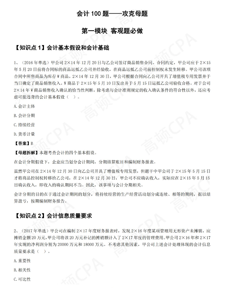 2023年CPA已经结束,差不多还有8个多月就到2024年CPA考试了,相信很多CPAer现在正在卯足了劲努力备考呢,不过CPA不是光啃啃书看看网课,就可以轻松通过,想要实现有效备考,关键是要多刷母题去巩固知识点!