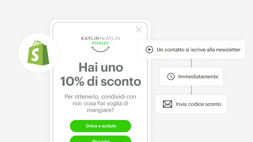 Sincronizza clienti, prodotti e dati di acquisto Shopify con Mailchimp.