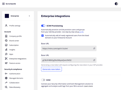 Miro partners closely with enterprise systems to unlock a seamless workflow for both users and organizations.