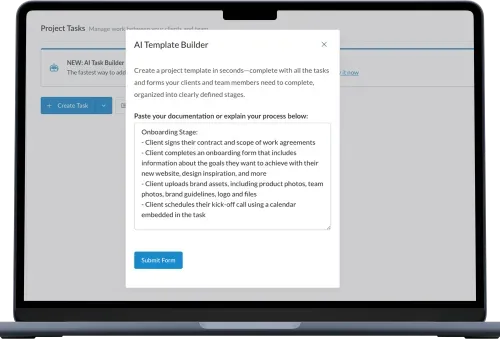 Describe your current workflow in a few sentences, and Motion.io’s AI will create all of the necessary tasks, organize them into stages, and even build and attach the necessary forms.