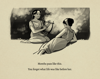 This is criminally underrated. When the musician started singing I swear my eyes started to sting, and I dont usually get emotional over games. The drawings are great, the sound is awesome, your interpretation of the soulmates trope is refreshing.