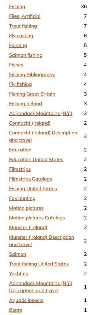 - Going off of the metadata at the Internet Archive that the books were contributed by the University of California and stamped with Berkeley, I searched their catalogue, first for a book I knew had the plate to see how it was tagged, then found the Trout Fishing group and filtered by books held by UC