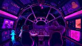 Poolside chillout party line cartoon animation. Summer holiday in courtyard pool 4K video motion graphic. Swimming and relaxing guests 2D linear animated characters on landscape background