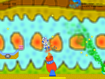 Gajuca: a foolhardy trowgth himself ith a cannon in a cyrcus, to do acrobatics and reach the goal, its idea of game development class, I draw and program it