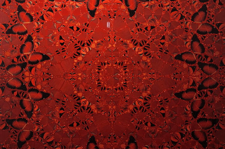 Since the beginning of his career Hirst has interacted with the butterfly, one of his best-known motifs. Inspired by a chance encounter in his studio and the intricate patterns found on Victorian tea trays, in The Empresses Hirst develops on the complex compositions he invented in his Kaleidoscope Paintings and Mandalas series.