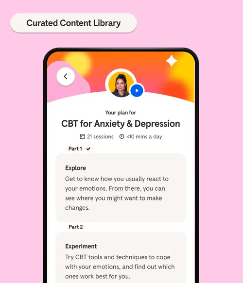 Members have access to added support with Ebb, our empathetic AI companion. Built by clinical psychologists, Ebb helps members navigate life’s ups and downs, reflect on their thoughts and feelings, and get personalized recommendations for activities in the app.