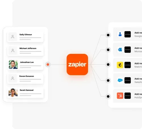 Create automated workflows for each lead captured with OVOU via Zapier. Integrate seamlessly with your CRM, streamline your follow-ups, and set reminders, ensuring no opportunity slips through the cracks.