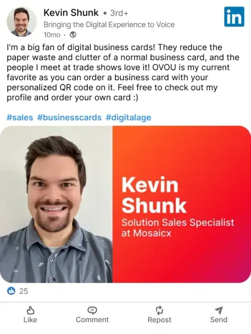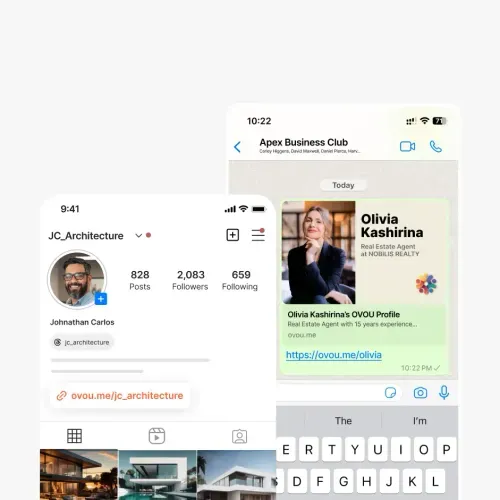 Say goodbye to link-in-bios! OVOU gives you the ability to share your profile with a customizable link and a professional-looking thumbnail, perfect for engaging across all your online communities.