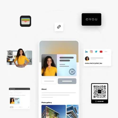 OVOU is a mini website builder in your pocket. Use interactive content blocks to create an engaging profile, making every introduction memorable, because you're more than a title on a piece of paper.
