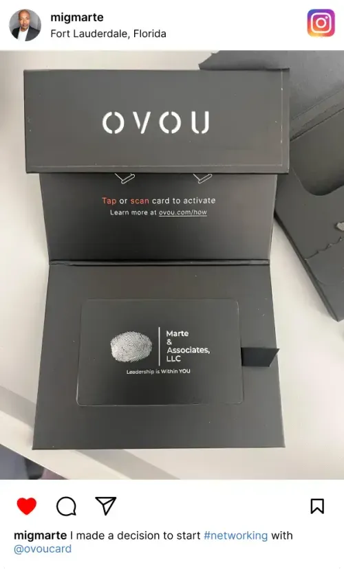 OVOU Smart NFC Business Card is tactile, professional, and modern. It works with all modern smartphones. No app required.
