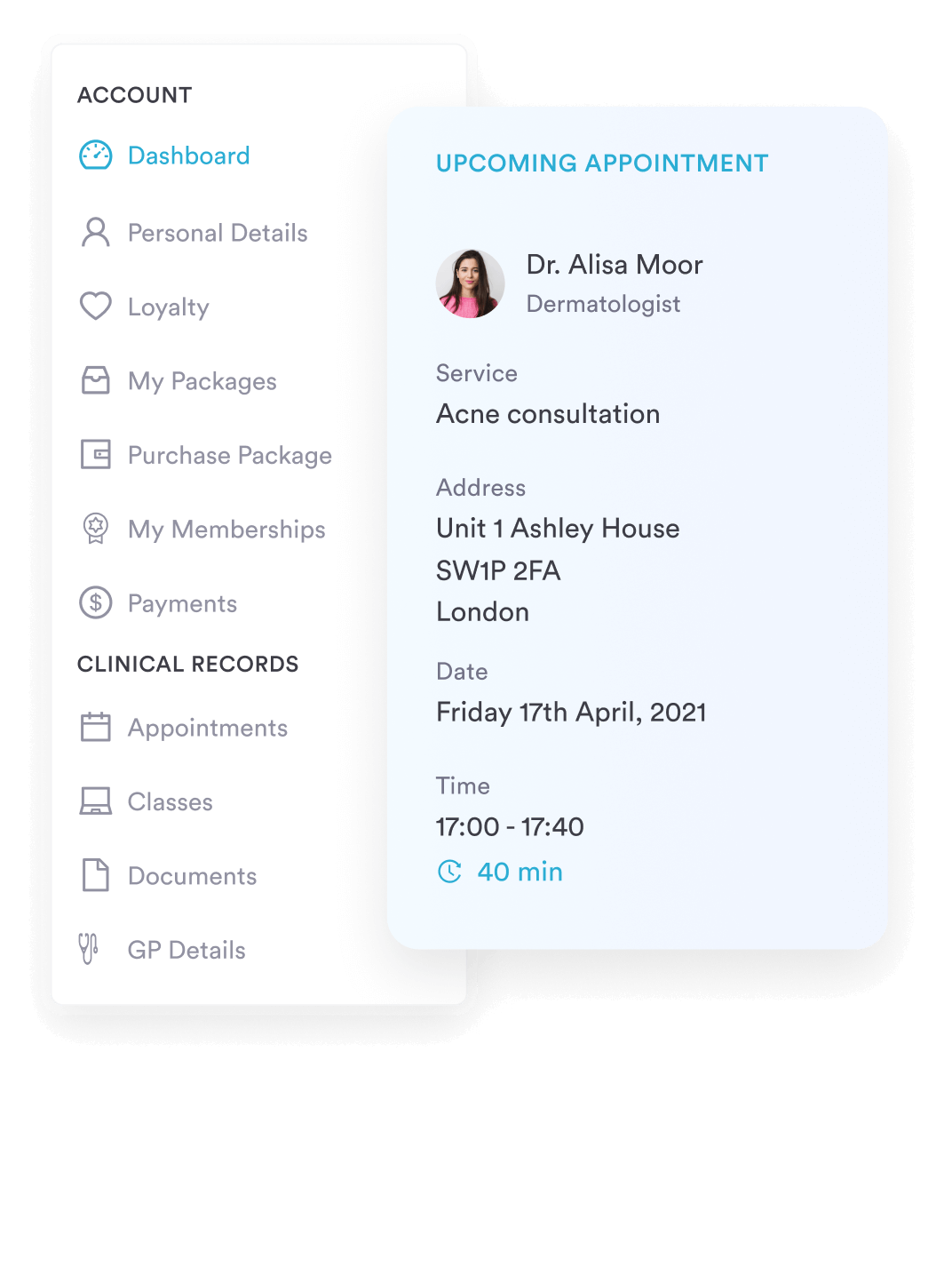Patients can access a private portal to book and manage appointments and review treatment notes, so they stay engaged between sessions.