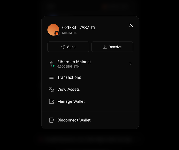 A button is added on the top-right corner that shows the connected wallet, Clicking on it opens the Wallet Details modal, which allows switching the active wallet or disconnecting the wallet
