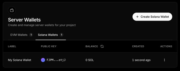 The Vault in your project dashboard now supports Solana! Upgrade your vault to unlock the ability to create and manage Solana server wallets directly from the UI. Every wallet you create is immediately available for use with the Solana API we announced previously.