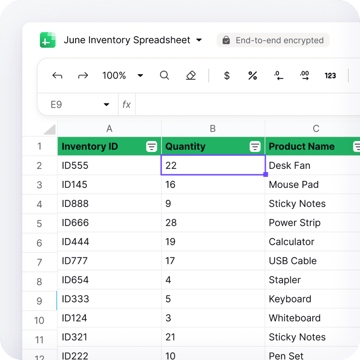 Proton Drive includes Proton Sheets, for powerful spreadsheets. Whether you’re working on budgets or analyzing reports, everything you create remains accessible only to you and those you share with.
